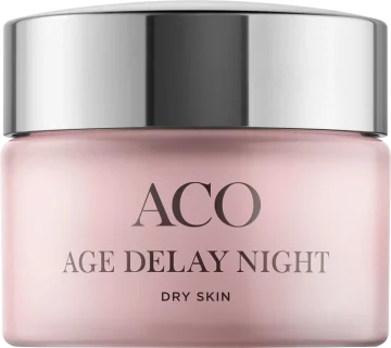 ACO Age Delay Nightcream Dry skin Parf är en återfuktande och effektiv nattkräm med anti-age egenskaper. Ansiktskrämen hjälper till att öka kollagenproduktionen för att återställa hudens elasticitet och återfuktar intensivt under natten. Passar för torr hud. 50ml.