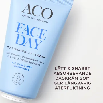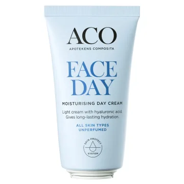 ACO Face Moisturising Day Cream är en lätt dagkräm som ger långvarig återfuktning. Ansiktskrämen hjälper till att stärka hudbarriären utan att täppa till porerna. Innehåller hyaluronsyra som snabbt går in i huden. Oparfymerad. Passar alla hudtyper. 50 ml.
