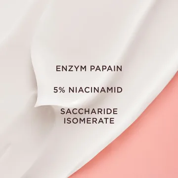 Aqua, Niacinamide, Diethylhexyl Carbonate, Glycerin, Canola Oil, Propanediol, Dimethicone, Cetearyl Olivate, 1,2-Hexanediol, Sorbitan Olivate, Cetyl Dimethicone, Hydrolyzed Hyaluronic Acid, Ascorbyl Tetraisopalmitate, Tocopheryl Acetate, Saccharide Isomerate, Papain, Sucrose Stearate, Glyceryl Stearate, Cetearyl Alcohol, Hydroxyacetophenone, Ammonium Acryloyldimethyltaurate/VP Copolymer, Acrylates/C10-30 Alkyl Acrylate Crosspolymer, Xanthan Gum, N-Hydroxysuccinimide, Caprylyl Glycol, Carbomer, Algin, Phenoxyethanol, Parfum