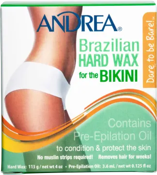 Andrea Brazilian Wax är ett hårdvax för hårborttagning, som effektivt tar bort även de mest envisa hårstråna från roten. Lämnar din hud len och hårfri i flera veckor. Speciellt framtagen för hårborttagning i bikinilinjens område. Fäster endast på håret, inte på huden, för en skonsammare och mer bekväm hårborttagning. Värm vaxet enkelt i mikrovågsugn tills det fått en krämig konsistens, applicera på huden, låt stelna lite och dra sedan av vaxet, utan att du behöver några papper- eller bommulsremsor. Tre olika stora spatlar medföljer som gör det enkelt att vaxa även de svåraste områdena. Ger ett resultat som varar i upp till 6 veckor.