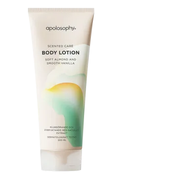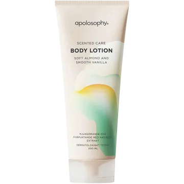 Vår Apolosophy Scented Care Body Lotion har en härligt mjuk doft av mandel och len vanilj, och innehåller dessutom ett natruligt extrakt från honung. Ingredienserna sheasmör, squalane och mandelolja bidrar till en mjukgörande effekt samtidigt som hudens elasticitet bevaras. Tack vare glycerin och noga utvalda doftnoter blir resultatet en intensivt återfuktande och vårdande body lotion med härlig doft. Producerad i Sverige. 200 ml.