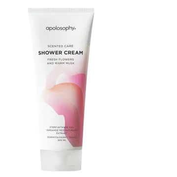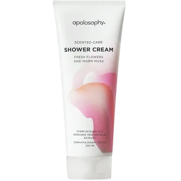 Vår Apolosophy Scented Care Shower Cream har en fräsch doft av blommor och varm mysk, och innehåller dessutom ett naturligt extrakt från körsbärsblomma. Ingredienserna glycerin, provitamin B5 och mandelolja bidrar med en intensivt återfuktande effekt. Resultatet blir en vårdande och skonsam rengöring med krämigt skum och en härlig doft, tack vare de noga utvalda doftnoterna. Producerad i Sverige. 200 ml.