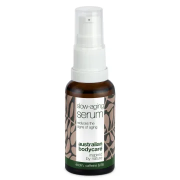 Australian Bodycare Slow-Aging Serum är ett ansiktsserum med effektiva anti age-egenskaper. Berikad med panthenol, antioxidanter och koffein som förbättrar elasticiteten i huden och ger en slätare hud. Panthenol tillför intensiv fukt och ger en smidig hud, peptider minskar synligheten av fina linjer, koffein verkar uppstramande och antioxidanter stärker hudens barriär. Passar mogen hud. Vegansk. 30 ml.