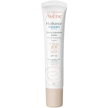 Avène Hydrance BB Rich Tinted Hydrating Cream SPF30 är en lätt tonad ansiktskräm med återfuktande och skyddande egenskaper, anpassad för torr hy. Berikad med lystergivande komplex som ger din hy en vacker glow, med en färgnyans som anpassar sig efter din hudton. Skyddar mot både UVA-och UVB-strålar tack vare SPF 30. Verkar långvarigt återfuktande och ger din hy en daglig boost av Avène Thermalvatten. Lämnar huden mjuk och smidig med en jämn hudton och varcker lyster. Passar normal till torr hy. 40 ml.
