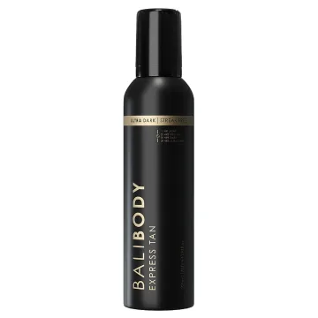 Bali Body Express Ultra Dark är en snabbverkande brun utan sol-mousse som ger en djup solbränna. Den luftiga formulan smälter in i huden och ger ett jämnt och intensivt resultat på kort tid. Formulan är berikad med 100 % Ecocert-certifierad naturlig DHA och vårdande oljor som återfuktar och mjukgör huden. 225 ml.