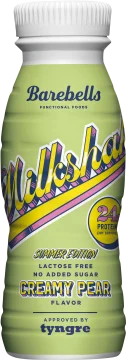 Barebells Milkshake Creamy Pear är en smakrik proteinshake med smak av krämig päronmilkshake. Innehåller 24 gram protein per flaska, laktosfri och utan tillsatt socker. Innehåller sötningsmedel. 330 ml.