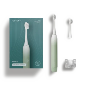 Be Lucent Prism Eltandborste är en eltandborste som rengör tänderna effektivt med hjälp av högfrekventa vibrationer. Vibrationerna hjälper till att avlägsna smuts och plack samtidigt som de stimulerar tandköttet. Tandborsten har en inbyggd trycksensor som varnar om du borstar tänderna för hårt, samt en automatisk timer som visar hur länge du har borstat och stänger av tandborsten efter 2 minuters borstning. Trycksensorn startar vibrationerna automatiskt när du trycker tandborsten mot tänderna. Be Lucent Prism är helt vattentät och har ett kraftfull batteri som ger upp till 60 dagars användning innan den behöver laddas igen. Tandborsthuvudena är tillverkade av mjuk TPE som ger en effektiv och skonsam tandborstning.