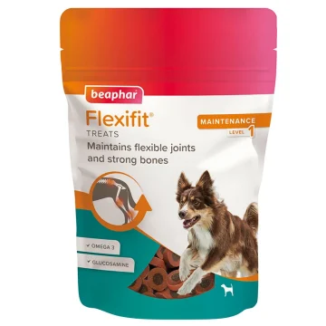 Beaphar Flexifit Treats Hund level 1 är ett ledtillskott med köttsmak. Tillskottet passar aktiva hundar och hjälper till att stödja friska leder och god rörlighet. Innehåller omega-3, glukosamin och kalcium. Passar hundar från 1 år. 150g.