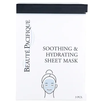 Beauté Pacifique Soothing & Hydrating Sheet Mask är en intensivt återfuktande sheet mask som verkar på djupet och hjälper huden att bibehålla sin naturliga fuktbalans. Formulan är berikad med B-vitamin och C-vitamin som hjälper till att stärka hudbarriären, jämna ut hudtonen och bidrar till en naturlig lyster. Ansiktsmasken är utvecklad för att ge en omedelbar fuktboost samtidigt som den verkar långsiktigt för att motverka att huden känns torr. Passar alla hudtyper och är särskilt effektiv för torr hy som är i behov av extra fukt. 3 st.