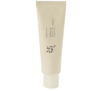 Beauty Of Joseon Relief Sun: Rice + Probiotics är en lätt och krämig solkräm med SPF50+ som känns behaglig på huden. Oavsett om du applicerar en stor mängd flera gånger är den inte klibbig utan ger en återfuktande finish som en lätt dagkräm. Innehåller 30 % risextrakt och spannmålsfermenterade extrak som ger fukt och näring åt huden. 50 ml.