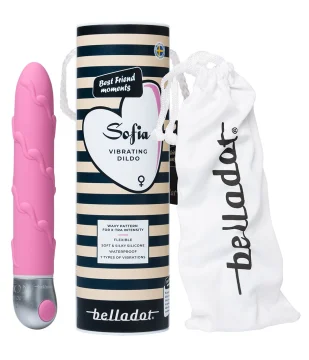 Belladot Sofia Vibrator Rosa är en böjbar vibrator med upphöjt vågmönster. Sju vibrationsmönster styrs med en intuitiv knapp. Tillverkad i mjuk, silkeslen silikon. Uppladdningsbar med USB-C och vattentät (IPX7). Tygpåse och laddkabel medföljer. Rosa. Ett års garanti. Diameter: 29 mm. Längd: 150 mm.