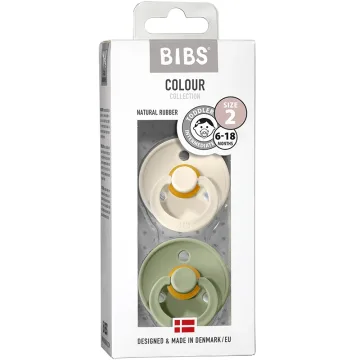 BIBS Colour Latex Size 2 Ivory/Sage är en trendig och stilren napp tillverkad i mjukt naturgummi. Sugdelen är försedd med en ventil som ser till att luft pressas ut och själva skölden böjer sig något utåt så att huden runt munnen inte blir irriterad. BIBS nappar har en rund form som många barn föredrar. Size 2 passar för 6+ månader. BPA-fri, PVC-fri och ftalatfri. Godkänd enligt EN 1400. 2-pack.
