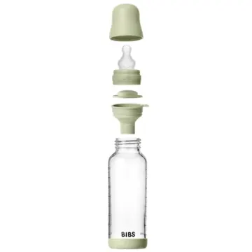 Bibs Glass Baby Bottle är en nappflaska tillverkad av tåligt borosilikatglas. Sugdelen i naturgummilatex är utformad för att efterlikna amning och har en antikolik-ventil som ger ett jämnt flöde. Alla delar är fria från BPA och tillverkade av livsmedelsgodkänt material. 240 ml.