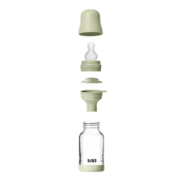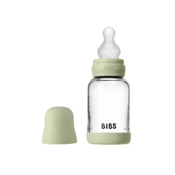 Bibs Glass Baby Bottle är en nappflaska tillverkad av tåligt borosilikatglas. Sugdelen i naturgummilatex är utformad för att efterlikna amning och har en antikolik-ventil som ger ett jämnt flöde. Alla delar är fria från BPA och tillverkade av livsmedelsgodkänt material. 120 ml.