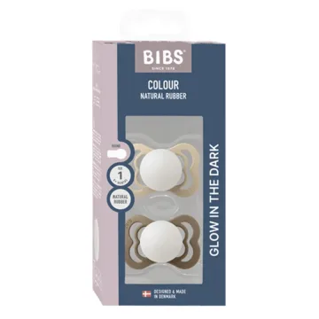 BIBS Pacifier Supreme Silicone Vanilla Glow/Dark Oak Glow är en napp med en praktisk självlysande funktion som gör den lätt att hitta i mörkret. Den har en symmetrisk, platt och droppformad sugdel i silikon och en sköld som ger gott luftflöde. Håll nappen mot en lampa i 5-10 sekunder för att aktivera funktionen. Fri från BPA och ftalater. 2-pack.