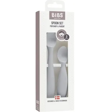 BIBS Spoon Set är ett skedset med en liten sked för barnet och en större sked för föräldern att mata med. Barnskeden har en greppvänlig design med halkfritt och ergonomiskt handtag. Mjukt material med smal form för att skydda barnets växande tänder. Skeden uppmuntrar barnet till att äta själv och utveckla sin finmotorik. Tål diskmaskin. Designat och tillverkat i Danmark. Uppfyller Europastandard EN 14372.