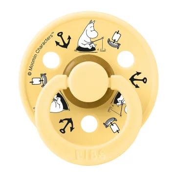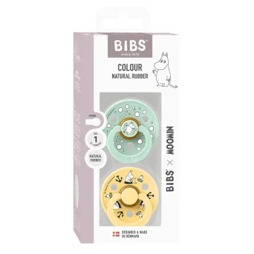 BIBS x Moomin Pacifier Colour Sailing Latex Nordic Mint Mix är den ursprungliga BIBS-nappen med motiv från Mumin. Kombinerar den ikoniska designen av nappen tillsammans med de uppskattade muminfigurerna som ger nappen personlighet och charm. Nappen har sin klassiska runda sköld med tre ventilationshål och rund sugdel i naturgummilatex som är flexibel och hållbar. BPA-fri och ftalatfri. Uppfyller Europastandard EN 1400+A2. 2 pack. Storlek: Size 1 passar för 0+ månader. Size 2 passar för 6+ månader.