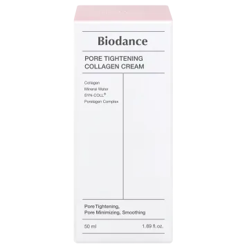 Biodance Pore Tightening Collagen Cream är en ansiktskräm som hjälper till att minimera porer och förbättra hudens struktur. Ansiktskrämen verkar också stärkande och dess utjämnande egenskaper bidrar till en slätare hudstruktur. Krämen innehåller bland annat kollagen, niacinamid och mineralvatten. 50 ml.