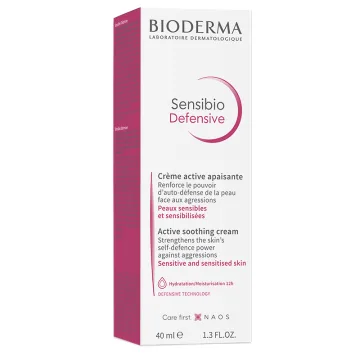 Bioderma Sensibio Defensive är en lugnande och återfuktande ansiktskräm som hjälper till att stärka hudens försvar mot yttre påverkan. Lätt formula som passar normal till kombinerad hud. Återfuktar huden i upp till 12 timmar och lindrar stickande och stramande känslor som kan uppstå hos en känslig hud. Innehåller karosin och e-vitamin som är rika på antioxidanter. Lugnar huden och stärker hudbarriären med rödrotssalvia och tetrapeptid-10. Oparfymerad och dermatologiskt testad. 40 ml.