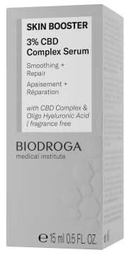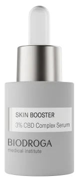 Biodroga Medical Institute Skin Booster 3% CBD Complex Serum är ett återfuktande och lugnande serum som balanserar en känslig och stressad hy. Berikat med CBD-komplex och oligo-hyaluronsyra som lugnar och mjukgör en lätt irriterad hud. Serumet ser till att fuktnivåerna förbättras och har en antiinflammatorisk effekt. 15 ml.