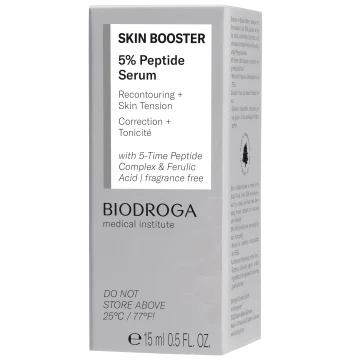 Biodroga Medical Institute Skin Booster 5% Peptide Serum är ett serum som motverkar fina linjer och ökar elasticiteten i huden. Berikad med fem högspecialiserade peptider och ferulinsyra som främjar cellbildningen, stimulerar elastin-och kollagensyntesen vilket kan bidra till ett stramare ansikte. 15 ml.
