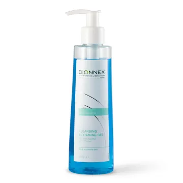 Bionnex Rensaderm Cleansing And Foaming Gel är en djuprengörande rengöringsgel. Den skummande gelen tar bort orenheter, bidrar till att balansera hudens talgproduktion och minimerar glansighet. Innehåller extrakt från kråkbär som verkar lugnande. Passar fet hud. 200ml