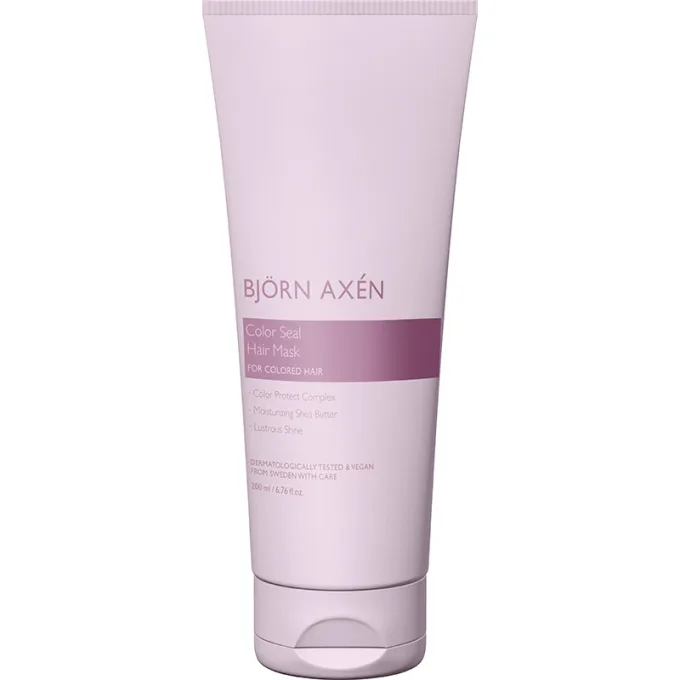 Björn Axen Color Seal Hair Mask är en fuktgivande hårmask för färgat hår, berikad med Color Seal Complex som bevarar hårets färg. Den stärker håret samtidigt som den återfuktar och gör håret lent, glansigt och mjukt utan att tynga ner det. Motverkar friss och hjälper till att reda ut tovigt hår. Passar alla hårtyper. Vegansk och dermatologiskt testad. 200 ml.
