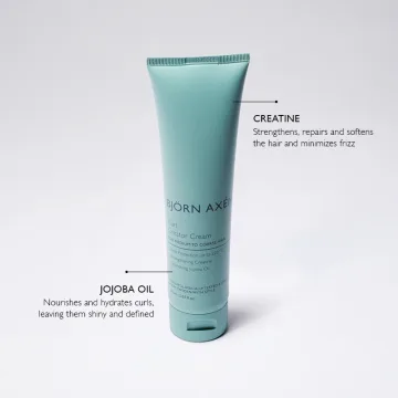 Björn Axén Curl Creator Cream är en stylingkräm för lockigt, vågigt och krulligt hår som stärker och reparerar håret. Den är berikad med kreatin och jojobaolja som vårdar håret och ger mjuka, glansiga och definierade lockar med långvarig stadga och minimal friss. Krämen har en fräsch citrusdoft med noter av citron, vitt te och vit mysk. Dermatologiskt testad och vegansk. 150 ml.