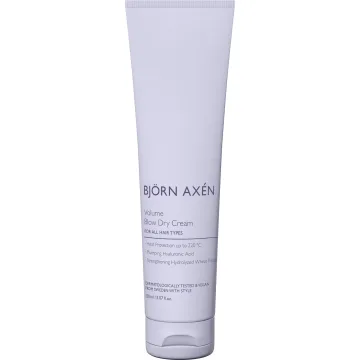 Björn Axén Volume Blow Dry är en stylingkräm med volymgivande och skyddande egenskaper. Stylingkrämen är berikad med hyaluronsyra och hydrolyserat veteprotein som hjälper till att återfukta och stärka håret. Den skyddar även håret mot värme i upp till 220 °C. 150 ml.