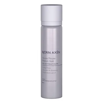Björn Axén Volume Mousse Medium Hold 80ml Travel Size är en protein- och vitaminberikad lättviktsmousse som kan användas för att få en naturlig volym eller för att krama upp naturliga lockar. Moussen ger medium stadga utan att tynga ner håret. Innehåller UV-filter och värmeskydd som skyddar mot slitage. Ger mycket effekt utan känsla av produkt i håret. Innehåller veteprotein och Provitamin B5 som verkar näringsgivande. Med en fräsch, fruktig och blommig doft med inslag av sandelträ och mysk. Skaka moussen och tryck ut en liten mängd i handflatan. Arbeta in i fuktigt hår och styla som vanligt. Passar alla hårtyper. Parfymerad. 80 ml.