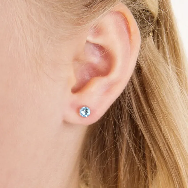 Blomdahl Aquamarine är vackra och hudvänliga örhängen tillverkade i medicinsk plast. Speciellt framtagna i samråd med hudläkare. Levereras i en transparent och hygienisk förpackning. 6 mm. 1 par.