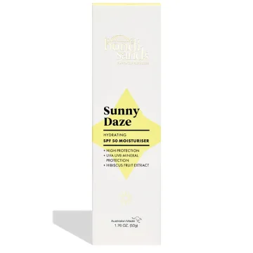 Bondi Sands Sunny Daze Moisturiser SPF 50 är en dagkräm med SPF 50 som skyddar mot både UVA- och UVB-strålar. Berikad med E-vitamin, zinkoxid och fruktextrakt från rosellhibiskus skyddar huden och ger fukt i upp till 72 timmar. Formulan är behaglig och lättapplicerad, och den lämnar ingen vit hinna på huden.Produkten är dermatologiskt testad. Parfymfri. 50 g.