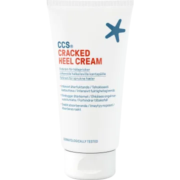 CCS Cracked Heel Creamär speciellt framtagen för mycket torra fötter. Den mjukgör hård hud och behandlar hälsprickor. Den innehåller en kombination av hög halt karbamid( 25%) och mjölksyra med fyra funktioner i ett: exfolierar, mjukgör, återfuktar och stärker hudbarriären hos torra fötter och spruckna hälar. Resultatet blir mjuka och lena hälar. 75 ml.