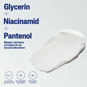 - Berikad med niacinamid, panthenol, E-vitamin och sötmandelolja