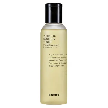 COSRX Full Fit Propolis Synergy Toner är ett återfuktande ansiktsvatten med en lätt formula som sjunker snabbt in i huden. Berikad med 2,6% svartbipropolis-extrakt och 10% honungsextrakt som verkar mjukgörande och ger huden lyster. 150 ml.