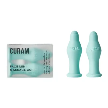 Curam Face cup mini Relaxing green är en ansiktskopp för mindre och känsliga områden i ansiktet som läppar, ögon och fina linjer. Koppen är utformad för att lyfta försiktigt på ansiktets bindväv. När bindväven lyfts främjas blodcirkulationen och lymfcirkulationen. Att massera musklerna i ansiktet kan bidra till att minska spänningar i ansiktsmusklerna, vilket kan resultera i ett mer avslappnat ansikte. Använd ansiktskoppen för delar av ansiktet, eller om hyn är känslig, över hela ansiktet. Curam Face cup mini Relaxing green levereras i en förpackning med 2 st för att göra det möjligt att behandla båda sidor av ansiktet samtidigt. Rör på ansiktskoppen hela tiden för att förhindra koppningsmärken. Använd gärna massageolja för ett mjukare glid och för att öka koppningens effekt. Koppen är tillverkad av 100% rent silikon. 2-pack.