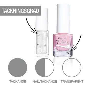 Depend O2 Minilack är ett lättapplicerat nagellack i kompakt format, perfekt när du vill ha många olika nyanser. Specialdesignad pensel som är platt med rundad kant och extra följsam som gör det lätt att applicera. Patenterad formula som släpper igenom 30% mer syre till nageln än ett vanligt nagellack. Flaskan är försedd med symboler som visar lackets täckningsgrad; täckande, halvtäckande eller transparent. Finns i flera olika läckra färgval. 5 ml.