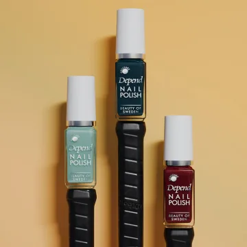 Använd alltid baslack under det färgade lacket, det är nyckeln till att ditt lack både håller längre och inte flagar. Baslack skyddar dessutom nageln så att färgpigment från lacket inte kan tränga in i din naturliga nagel och orsaka missfärgning. Lacka ditt färgade lack i tunna lager. Första lagret bli lätt ojämt men det blir snyggt i lackning nr 2. Depends lack har dessutom en specialdesignad pensel som är extra förlåtande. Försegla lackningen med ett topplack. Applicera 1-2 tunna lager på torrt nagellack. För ökad hållbarhet, bättra på med ett tunt lager varannan till var tredje dag.