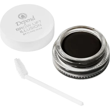 Depend Perfect Eye Brow Illusion Wax är ett färgat stylingvax som färgar, tämjer, lyfter och formar varje hårstrå och ger effekten av ett trendigt Brow lift. Fixerar snabbt och ger långvarig stadga, brynen hålls snyggt på plats hela dagen. Appliceras med medföljande borste. 5 g.
