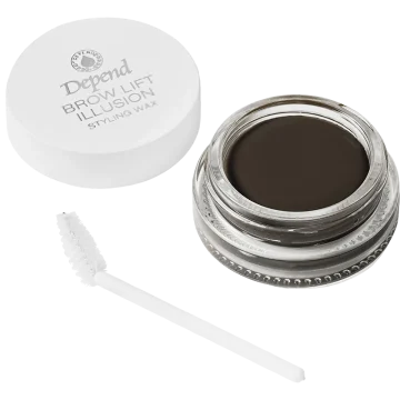 Depend Perfect Eye Brow Illusion Wax är ett färgat stylingvax som färgar, tämjer, lyfter och formar varje hårstrå och ger effekten av ett trendigt Brow lift. Fixerar snabbt och ger långvarig stadga, brynen hålls snyggt på plats hela dagen. Appliceras med medföljande borste. 5 g.