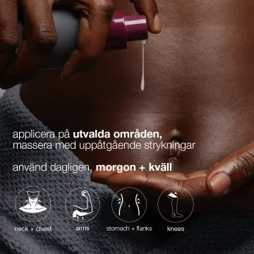 Applicera på utvaldaområden, massera med uppåtgående strykningar. Använd morgon och kväll.