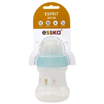 ESSKA Esprit Nappflaska Anti-Kolik är en greppvänlig nappflaska med bröstliknande napp med anti-kolik-funktion. Flaskan är speciellt utformad för att vara ergonomisk och lätt att hålla i för både barn och vuxen. Med en extra bred öppning som gör det enkelt att fylla och rengöra flaskan och en tydlig gradering som gör det lätt att mäta upp rätt mängd vätska. Det läckagesäkra locket kan användas som måttskopa. Dinappen är tillverkad av medicinskt klassat silikon som är mjukt och formbeständigt, och är utformad för att efterlikna bröstets naturliga form för att underlätta växling mellan amning och flaskmatning. Dinappen har även en unik ventil med känslig öppnings- och stängningsfunktion som ger ett jämnt flöde och minskar risken för att barnet sväljer luft. En dinapp i storlek M ingår och passar till vatten, modersmjölkersättning och bröstmjölk. Andra storlekar finns att köpa separat. Fri från BPA och testad enligt europeisk standard EN-14350, kan kokas och kan diskas i diskmaskin. Rymmer 180 ml.