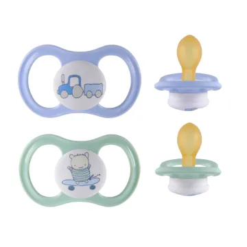 ESSKA Happy 4+m Latex Blå är en napp med symmetrisk sugdel. Nappen är alltid rättvänd och har en ventilerad sköld som är snäll mot barns känsliga hud. Sugdelen är gjord i slitstark och högkvalitativ naturgummi som är flexibelt, mjukt och motståndskraftigt mot barns tänder. Tillverkad i Sverige. 2-pack.