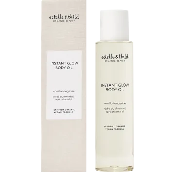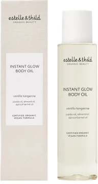 Estelle & Thild Vanilla Tangerine Instant Glow Body Oil är en exklusiv mix av näringsrika och naturliga oljor av jojoba, mandel och aprikokärnor. Vårdar och återfuktar huden som passar alla hudtyper men speciellt dig med torr hud. Vegansk formula som absorberas snabbt och kapslar in fukten för maximal återfuktning. Kroppsoljan ger huden en naturlig glow och lämnar en mjuk och silkeslen känsla. 100 ml.