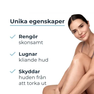 - Bad- och duscholja som skonsamt rengör känslig hud