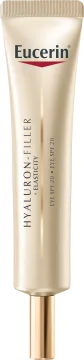 Eucerin Hyaluron-Filler + Elasticity Eye Cream SPF20 är en ögonkräm med fuktbindande och skyddande egenskaper, speciellt anpassad för den tunna och känsliga huden runt ögonen. Förbättrar hudens elasticitet, reducerar rynkor och motverkar mörkar ringar kring ögonen. Ger en förbättrad lyster och en fräschare, piggare finish. Berikad med fuktbindande hyaluronsyra samt SPF15 och UVB och UVA-skydd som hjälper till att förebygga hudens förtida åldrande orsakat av solen. Även lämplig för kontaktlinsbärare. Oftalmologiskt testad. Passar alla hudtyper. Parfymfri. 15 ml.