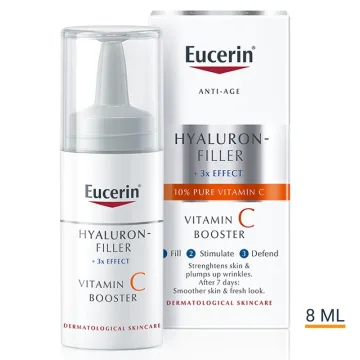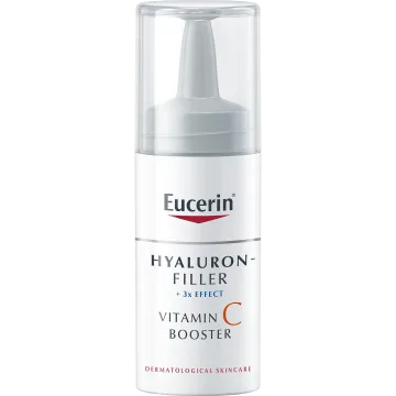Eucerin Hyaluron-Filler Vitamin C Booster är ett ansiktsserum berikat med färsk, ren, antioxidantrik C-vitamin. Stärker huden och boostar hudens kollagen för en fräsch hy med en vacker lyster. Innehåller även hyaluronsyra som kan bidra till att minska rynkor och fina linjer. Appliceras på morgonen, på väl rengjord hy innan din dagkräm. Passar alla hudtyper. 8 ml.