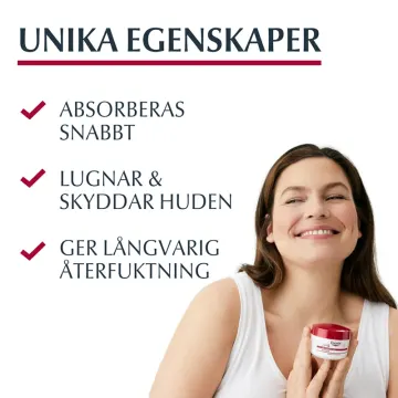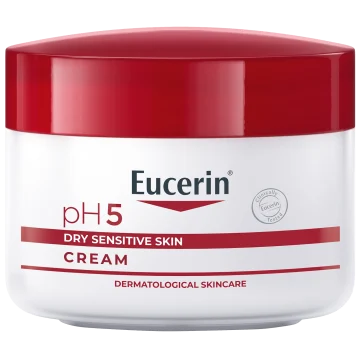 Eucerin pH5 Cream är en vårdande kräm för ansikte och kropp med skyddande och lugnande egenskaper. Den lugnande formulan med pH Balance System hjälper till att vårda hudens pH-värde och naturliga skyddsbarriär. Formulan är berikad med 5% Dexpanthenol som lugnar och ger naturlig återfuktning till huden. Efter användning känns huden len och återfuktad. Passar även känslig och reaktiv hud. 75 ml.