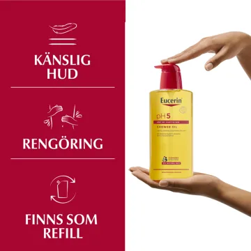 Eucerin pH5 Duscholja är en återfettande duscholja som rengör huden skonsamt men effektivt. Det milda och krämiga löddret återfuktar och gör huden mjuk och len. Passar normal- till torr och känslig hud. Doseras i lagom mängd och sköljs av med vatten. Passar alla hudtyper. Doseringspump. 400 ml.