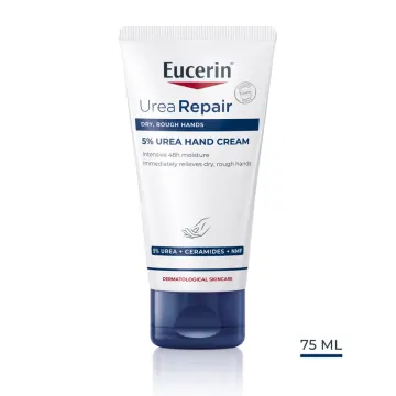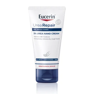 Eucerin UreaRepair Hand Cream är en intensivt återfuktande och mjukgörande handkräm för torra till extremt torra händer och nagelband som kan användas varje dag. Absorberas snabbt utan att lämna kladdiga rester på huden. Innehåller 5% Urea (karbamid), Ceramider och Laktat som är effektiva fuktgivare. Huden blir märkbart mjukare och lenare med ett omedelbart och långvarigt resultat. Utan parfym. 75 ml.